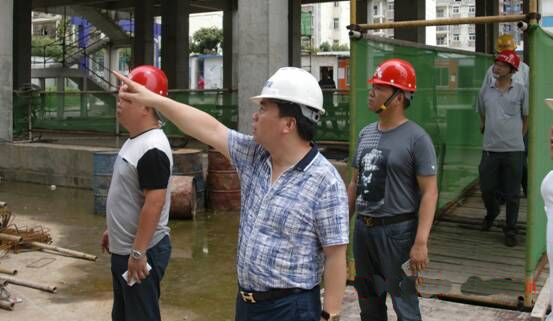 2015年6月13日周六上午,集團公司召開完周行政工作例會后,在總經(jīng)理徐遠征同志的帶領(lǐng)下,市場管理部、工程管理部、招投標部、綜合管理部、市政分公司負責人第一站來到蔡甸大拇指廣場檢查施工現(xiàn)場文明施工整改情況,總經(jīng)理首先肯定了上次檢查整改后施工現(xiàn)場明顯改觀,隨后就進一步完善圍擋角區(qū)、安全帽佩戴等進一步提出了要求;第二站來到大集張堡小學施工現(xiàn)場,對墻基坑深度提出了嚴格按圖紙施工的規(guī)范要求,安排由公司工程管理部對該施工工地實行24小時嚴格監(jiān)管的做法得到了校方領(lǐng)導的充分肯定。