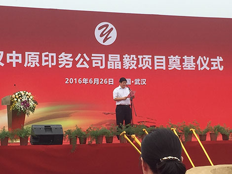 東西湖臺商投資區(qū)主任代表東西區(qū)各級領導發(fā)表重要講話,對武漢中原印務公司晶毅項目在此舉行奠基表示最衷心的祝賀和寄予深切的厚望!