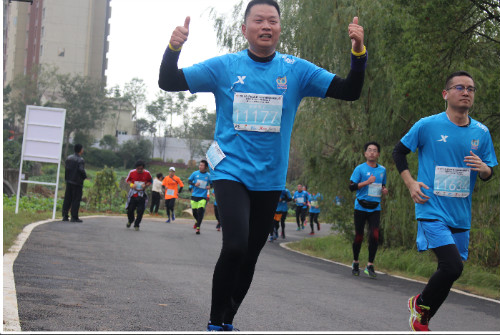 集團(tuán)公司董事長徐濤同志,賽程7公里處,步伐有力,體能充沛。