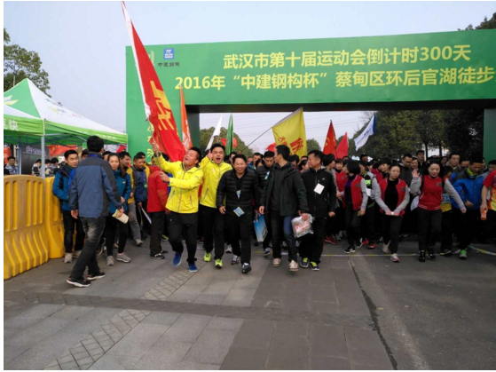 12月10日上午9點(diǎn)整,2016“中建鋼構(gòu)杯”蔡甸區(qū)環(huán)后官湖徒步大賽在山靈水秀的白蓮湖廣場鳴槍開賽。3856名參賽人員從這里出發(fā),在風(fēng)景如畫的濕地公園,領(lǐng)略沿途的自然風(fēng)光,感受非一般清新的武漢。奔馳這樣遠(yuǎn)離都市喧囂的綠色賽道上,不僅是一場完美的人生體驗(yàn),更是一次絕佳的身體放松之旅。湖北大集建設(shè)集團(tuán)在董事長徐濤的帶領(lǐng)下以最飽滿的熱情迎接這場賽事!