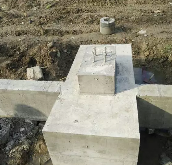 5號(hào)廠房基礎(chǔ)短柱成型較好,四角方正,幾何尺寸符合規(guī)范要求。