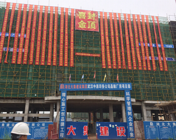2017年6月27日,歷時(shí)一年時(shí)間,在湖北大集建設(shè)集團(tuán)重質(zhì)量、保安全、趕工期、抓進(jìn)度的配合下,中原印務(wù)1#樓主體順利封頂。集團(tuán)董事長徐濤、總經(jīng)理徐遠(yuǎn)征、副總經(jīng)理徐家富及該項(xiàng)目重要骨干陪同中原印務(wù)董事長及其公司高層領(lǐng)導(dǎo)共同見證這一喜慶時(shí)刻。