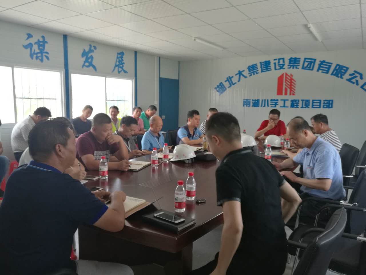 會(huì)議開始, 由南湖小學(xué)項(xiàng)目施工員介紹了該項(xiàng)目的主要情況及進(jìn)度,并表達(dá)了南湖小學(xué)項(xiàng)目創(chuàng)杯爭優(yōu)的決心,確保楚天杯,爭創(chuàng)魯班獎(jiǎng),并對施工工藝細(xì)節(jié)和各個(gè)操作班組制定了具體規(guī)范和標(biāo)準(zhǔn)。