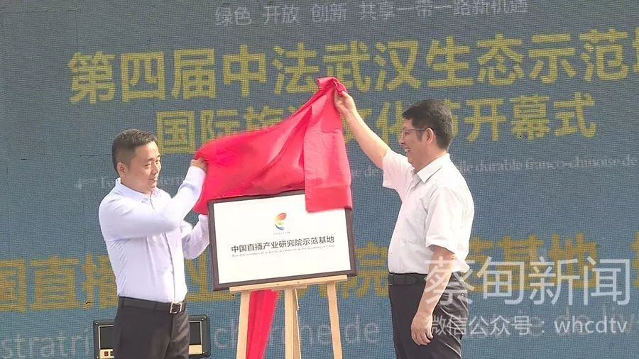 市政府副秘書(shū)長(zhǎng)雷勇生與武漢閱景匯發(fā)展有限公司董事長(zhǎng)徐濤為“中國(guó)直播產(chǎn)業(yè)研究院示范基地”揭牌。