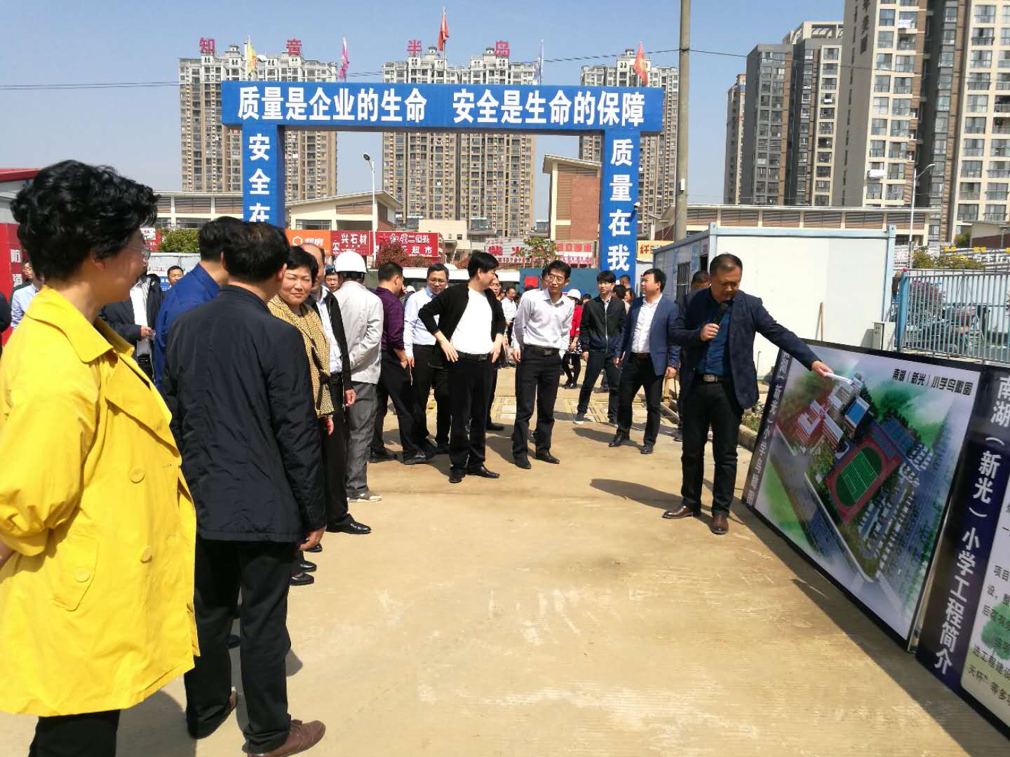 2018年3月28日上午10:00,蔡甸區(qū)2018年第一季度“重大項(xiàng)目拼搏趕超現(xiàn)場會”走進(jìn)蔡甸區(qū)南湖(新光)小學(xué)在建項(xiàng)目部,參加出席的人員有:蔡甸區(qū)區(qū)長彭巧娣,蔡甸區(qū)黨委、政府、人大、政協(xié)領(lǐng)導(dǎo),蔡甸區(qū)教育局以及各部、委、局主要領(lǐng)導(dǎo),各鄉(xiāng)、鎮(zhèn)、廠主要負(fù)責(zé)人等共計(jì)100余人。