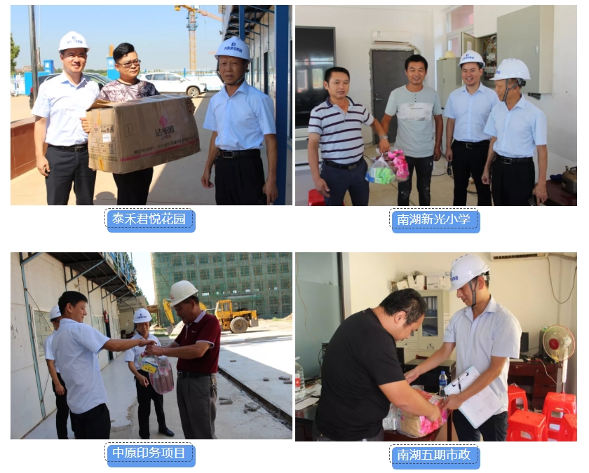 為切實(shí)做好夏季施工現(xiàn)場(chǎng)防暑降溫工作,7月19日,集團(tuán)公司開展一線慰問送清涼活動(dòng),前往各項(xiàng)目部發(fā)放毛巾、風(fēng)油精、人丹、十滴水等防暑降溫物資,同時(shí)要求各項(xiàng)目負(fù)責(zé)人要從以人為本、安全生產(chǎn)的高度,做好高溫防暑措施,合理安排好夏季高溫作業(yè)時(shí)間,確保項(xiàng)目一線員工安度酷暑。