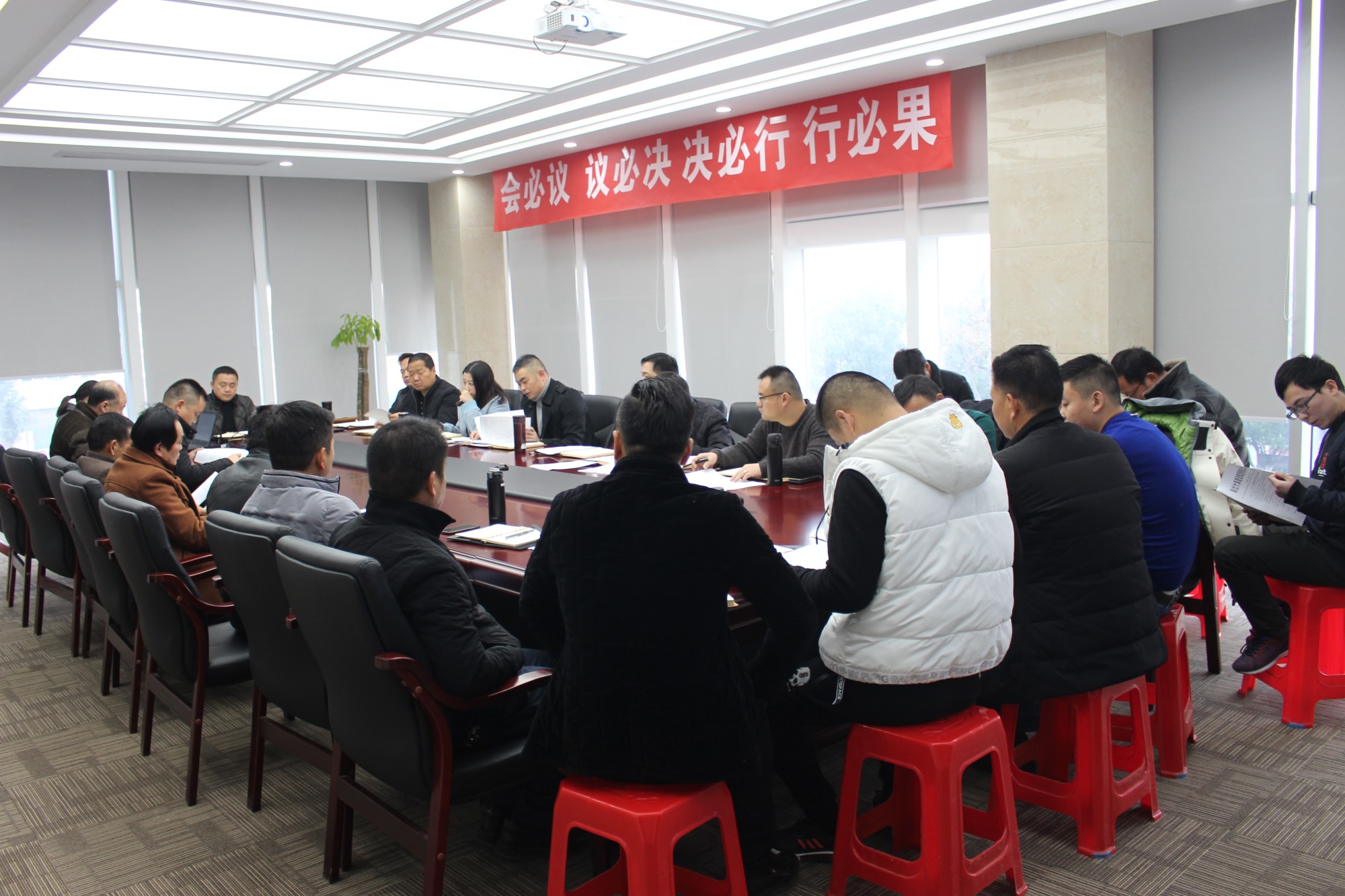 12月12日上午,集團(tuán)隆重召開了在建項(xiàng)目年終工作安排部署會(huì),吹響了年終沖鋒的號(hào)角。集團(tuán)董事長(zhǎng)徐濤、總經(jīng)理徐遠(yuǎn)征、副總經(jīng)理徐家富,以及相關(guān)職能部門負(fù)責(zé)人、各項(xiàng)目經(jīng)理參加了此次會(huì)議。