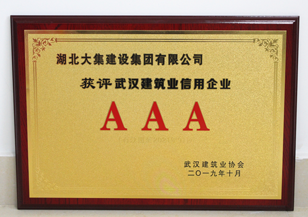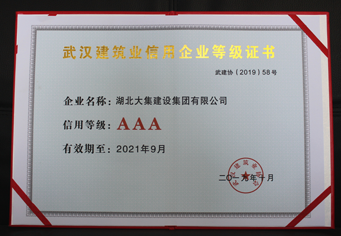 近日,經武漢市各區(qū)建筑業(yè)協會推薦、專家評委初審、市各大站辦審核、評定領導小組和會長辦公會審定,并在武漢市公共資源交易中心和武漢建筑業(yè)協會官網同步公示無異議后,湖北大集建設集團有限公司再次獲評“武漢建筑業(yè)AAA級信用企業(yè)”。