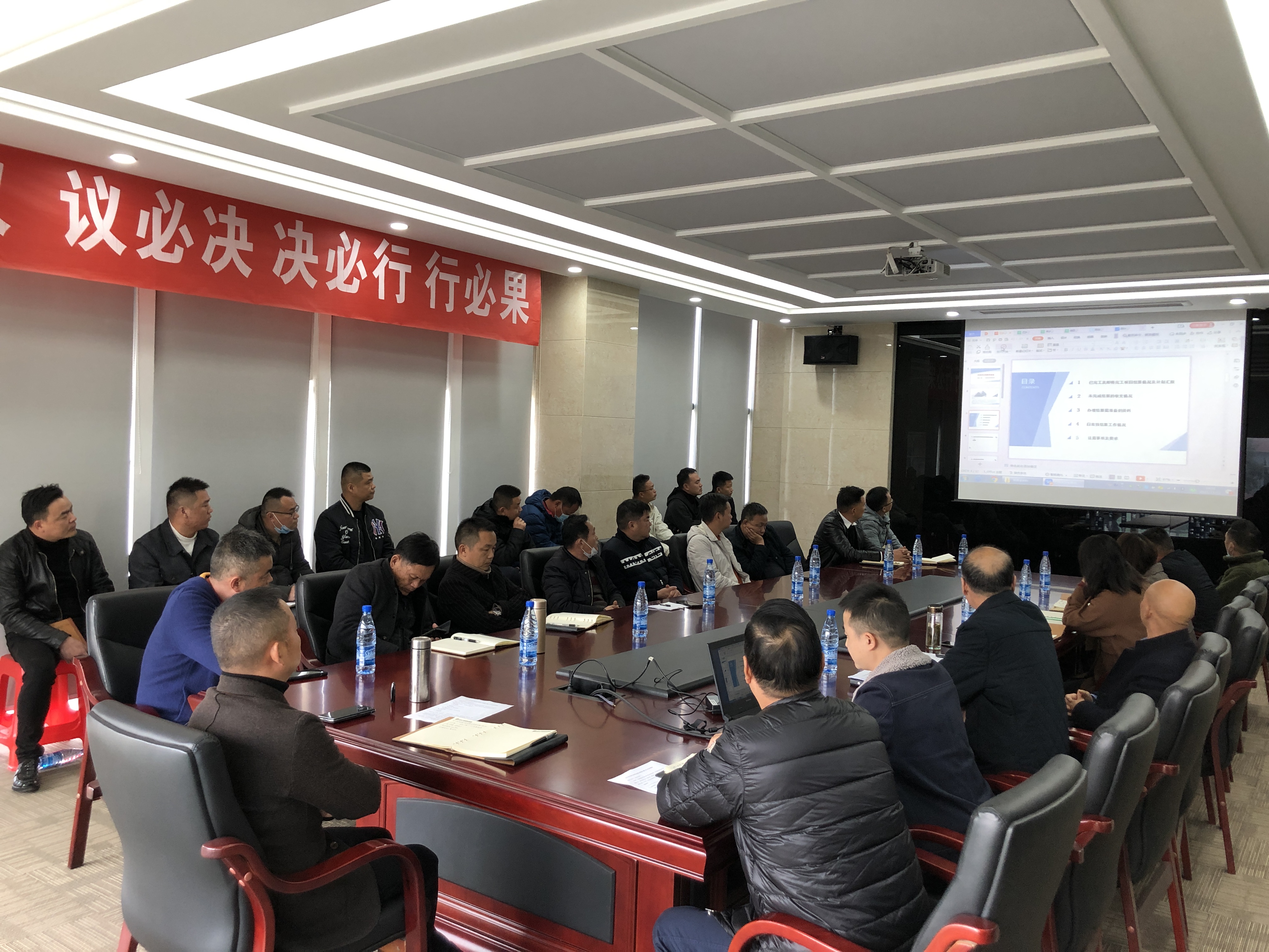 會上,財務(wù)部、工程部、招投標部、物資供應(yīng)部及法務(wù)部部長分別就項目應(yīng)收應(yīng)付款項、項目完成產(chǎn)值及施工情況、已完工及即將完工項目結(jié)算情況、人材機合同款項支付時間節(jié)點、項目訴訟糾紛等事項進行了匯報。