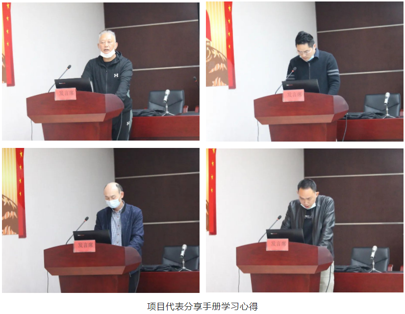 項(xiàng)目經(jīng)理代表周感書(shū)、房建施工員代表魏巍、房建安全員代表張彥偉以及市政施工員代表彭文杰依次上臺(tái),從不同角度分享了他們對(duì)《湖北省質(zhì)量安全手冊(cè)》的學(xué)習(xí)心得。