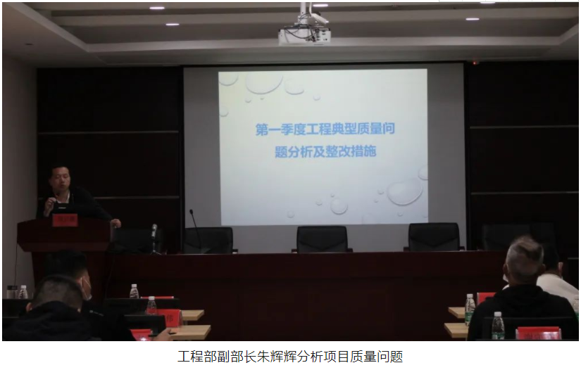 隨后,會(huì)議進(jìn)入質(zhì)量、安全隱患分析環(huán)節(jié),工程部副部長(zhǎng)朱輝輝及安全主管秦春波采用PPT通報(bào)問(wèn)題的方式,照片配合講述,更直觀的把項(xiàng)目質(zhì)量、安全隱患問(wèn)題展現(xiàn)在大家面前,朱工和秦工結(jié)合項(xiàng)目現(xiàn)場(chǎng)存在的質(zhì)量、安全問(wèn)題,著重分析了問(wèn)題產(chǎn)生的原因以及現(xiàn)場(chǎng)的安全管理情況,并逐一對(duì)各項(xiàng)目提出了相應(yīng)的整改措施。