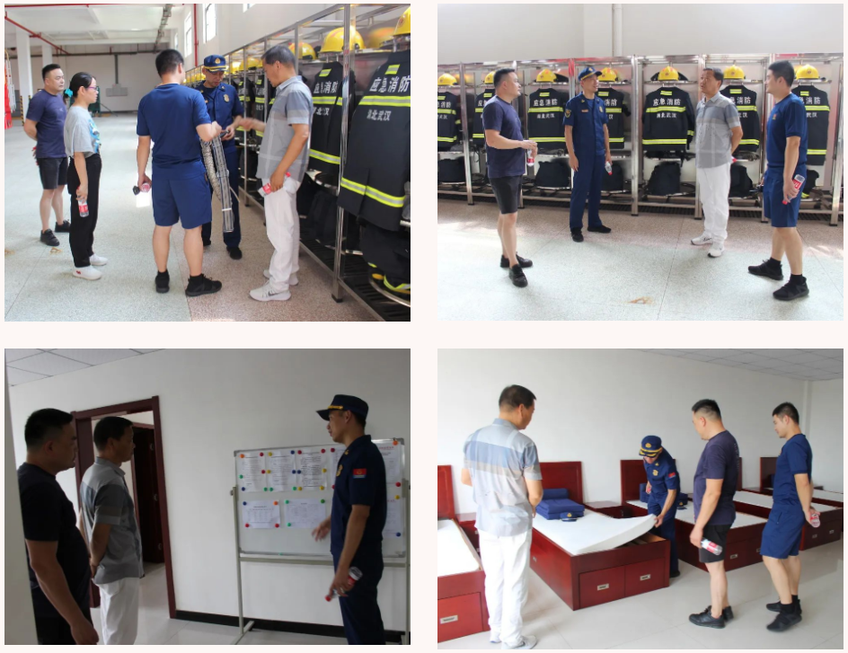 大集消防救援站教導(dǎo)員盧志帶著大家參觀了消防裝備庫及消防官兵備勤室,參觀中,集團(tuán)公司副總經(jīng)理徐家富與盧教導(dǎo)員進(jìn)行了深入交流,詢問官兵們的日常生活及工作情況,并向高溫下堅(jiān)持訓(xùn)練、持續(xù)工作的他們表示敬意。