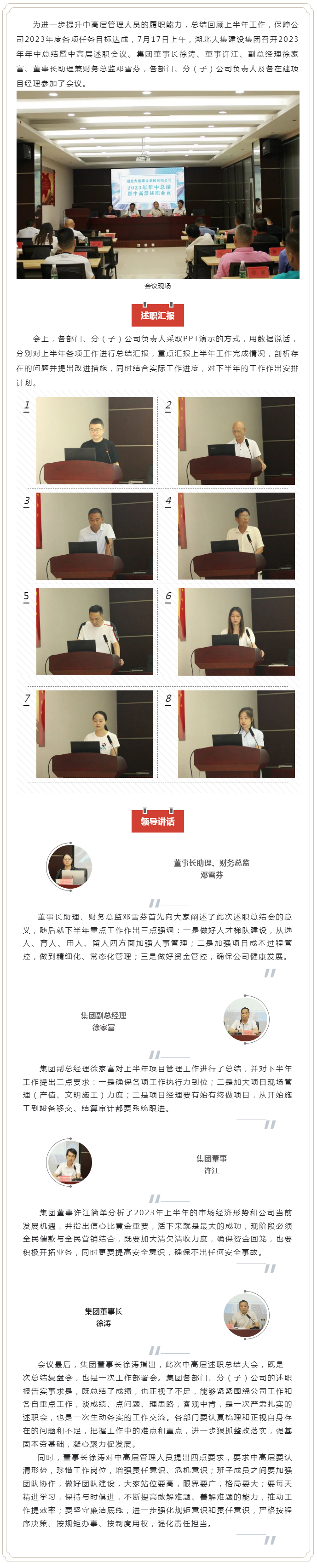 述職總結(jié)強(qiáng)管理 凝心聚力共奮進(jìn)|集團(tuán)公司召開2023年年中總結(jié)暨中高層述職會議
