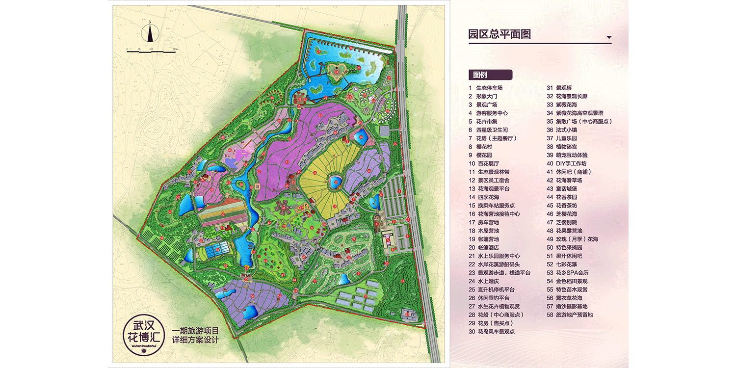 武漢花博匯總投資50億元,總規(guī)劃面積4800畝,邀請國際頂尖設(shè)計(jì)團(tuán)隊(duì)擔(dān)綱設(shè)計(jì),以“村-田-林-溪-塘”場地肌理為基礎(chǔ),以創(chuàng)意型花海景觀打造為主題,竭力打造集花卉旅游觀光、文化傳承交流、創(chuàng)意農(nóng)業(yè)體驗(yàn)、田園養(yǎng)生度假、親水休閑游樂、美麗鄉(xiāng)村體驗(yàn)、花卉集中展銷等諸多功能于一體的全國性精品休閑度假綜合體,滿足城市人群回歸自然、城郊休憩、體驗(yàn)野趣、養(yǎng)生度假等極致追求。