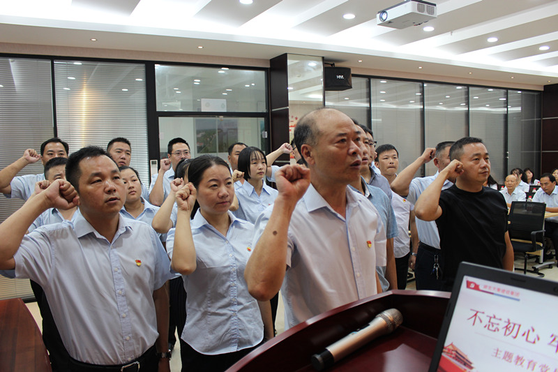 全體黨員重溫入黨誓詞。簡單的80個字,12個標(biāo)點(diǎn)符號,卻組成了這個世界上最令人震撼的話語,每一句都表達(dá)著大家對黨和人民的深情。