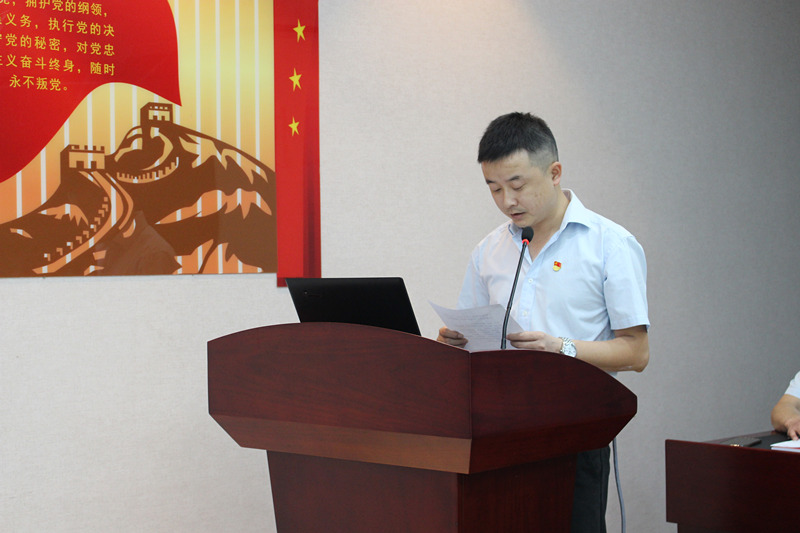 集團(tuán)黨委委員、房地產(chǎn)開發(fā)支部書記胡鵬同志宣讀《關(guān)于湖北大集建設(shè)集團(tuán)“不忘初心,牢記使命”主題教育工作組成員名單》。