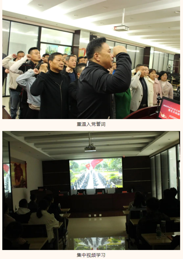 會議第二項議程,召開了4月份支部主題黨日活動。會議上,全體黨員起立奏唱國歌,并重溫入黨誓詞。集團黨支部書記宣讀了中共蔡甸區(qū)委組織部《2023年4月份黨支部主題日重點學習內容》后,大家集中視頻學習了《如何推進國家安全體系和能力現(xiàn)代化》內容。