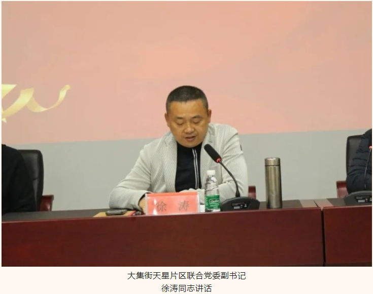 會議最后,大集街道天星片區(qū)聯(lián)合黨委副書記、集團董事長徐濤同志總結講話。徐濤同志表示,今天的會議十分有意義,既是一次納新會議,又是一次新老黨員接受再教育的會議。徐濤同志向全體黨員提出三點要求:一是時刻保持入黨初心不變,嚴格要求自己,在學習、生活、工作中堅持黨員本色,爭當表率,發(fā)光發(fā)亮;二是始終把理論學習放在首位,帶頭學習,提升思想認識,堅持讀原著、學原文、悟原理,強讀強記,常學常新,把自己擺進去,把職責擺進去,把工作擺進去,做到學思用貫通,知信行統(tǒng)一;三是時刻牢記自己是一名共產黨員的身份,思想上先人一步,行動上奮勇爭先,用實際行動踐行錚錚誓言,把發(fā)揮黨員先鋒示范作用放在心里、扛在肩上、落在實際行動中。