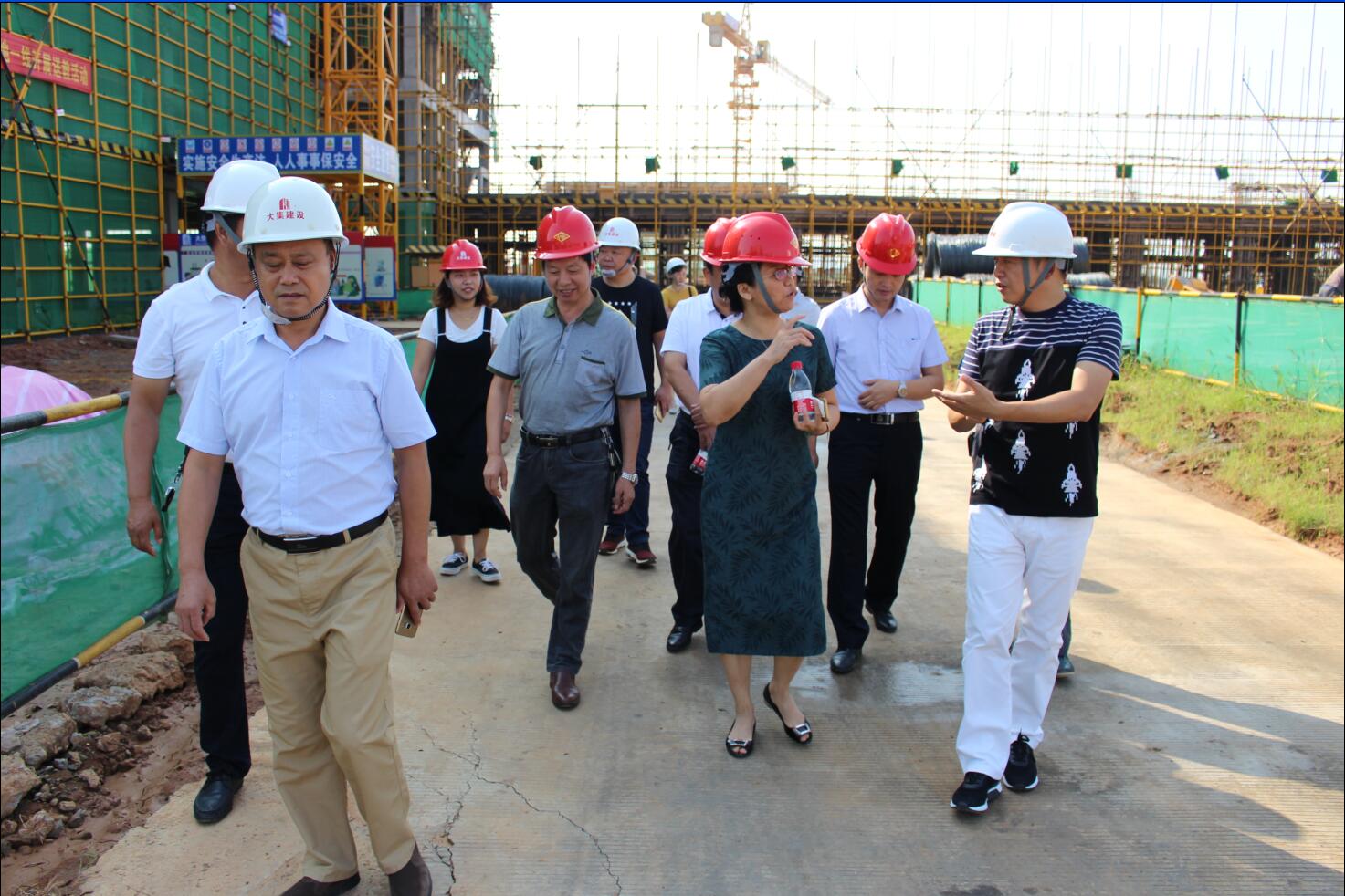 各級領(lǐng)導(dǎo)充分肯定了施工現(xiàn)場的標(biāo)準(zhǔn)化管理,詳細(xì)了解了該項目的基本情況和施工進度,并結(jié)合施工效果圖對在建的教學(xué)樓、體育場等施工現(xiàn)場進行考察督導(dǎo)。蔡甸區(qū)人大張主任親切地詢問了當(dāng)前施工過程中是否存在需要政府協(xié)調(diào)解決的困難,現(xiàn)場囑咐各級領(lǐng)導(dǎo)要積極協(xié)助給予支持,確保項目按期完成建設(shè)目標(biāo),為明年即將入學(xué)的廣大師生交上一份滿意的答卷!